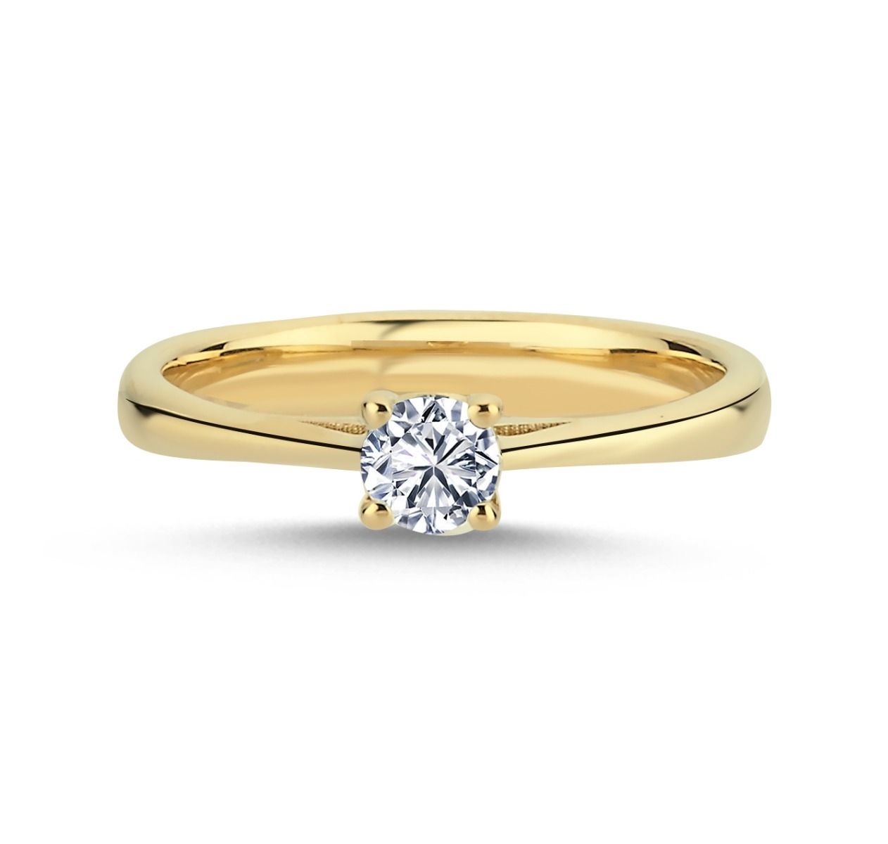 14 kt guld The One fra Nuran med The One ringen, en solitaire ring med en enkelt brillant i 14 karat klassisk guld. Diamanten er en 0,38 ct i brilliant slib i kvaliteten Wesselton Si.