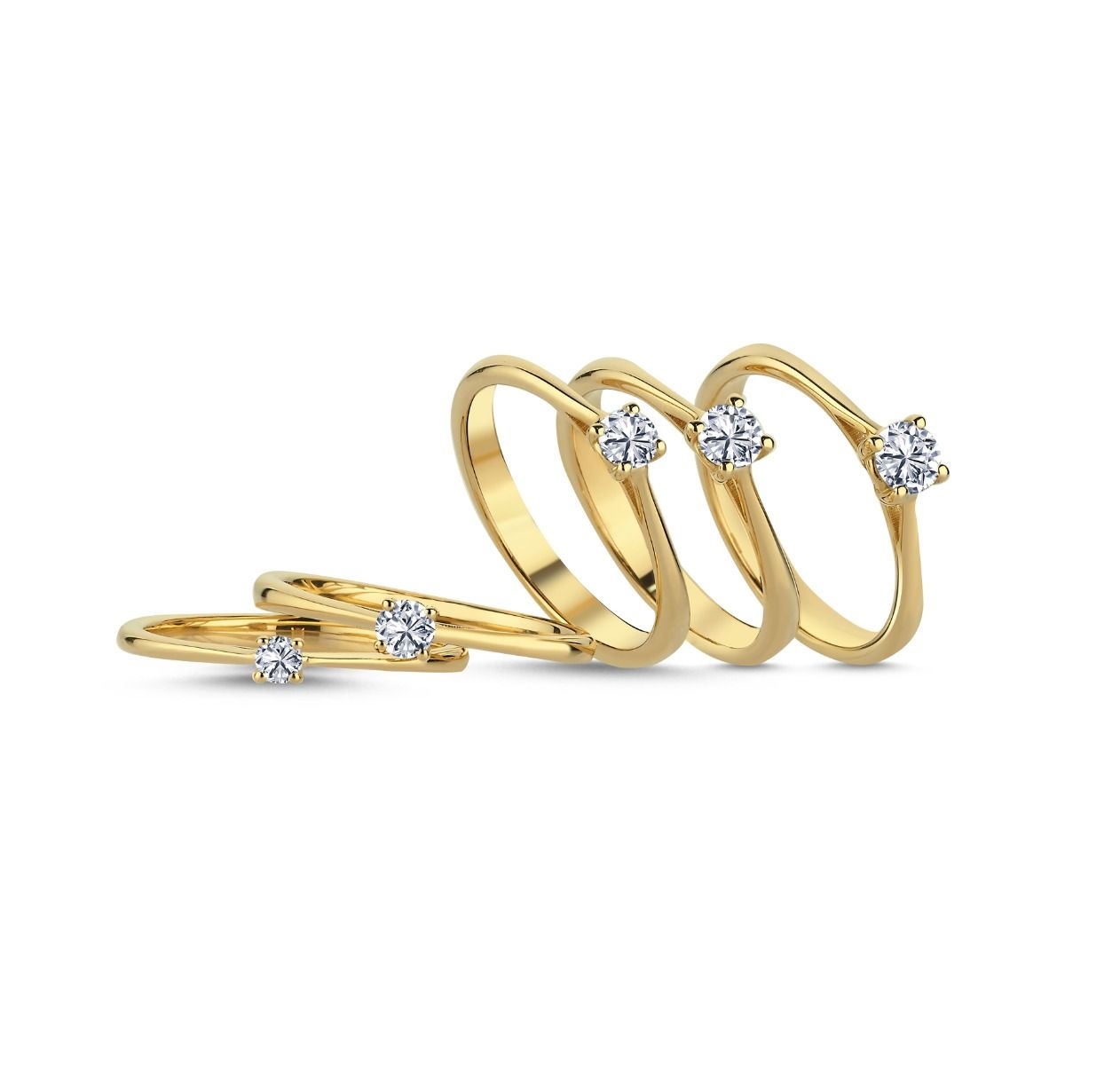 14 kt guld The One fra Nuran med The One ringen, en solitaire ring med en enkelt brillant i 14 karat klassisk guld. Diamanten er en 0,33 ct i brilliant slib i kvaliteten Wesselton Si.