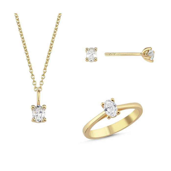 14 kt guld smykkesæt, The One Oval serien fra Nuran med ialt 0,92 ct Diamant