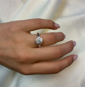 14 kt hvidguld Halo Luxury by Siersbøl med 14 karat hvidgulds diamant ring med ialt 1,45 ct lab grown diamanter TW/VS - 1 ct rund center sten med ialt 0,45 ct diamanter rundt om center stenen og på ringskinne.