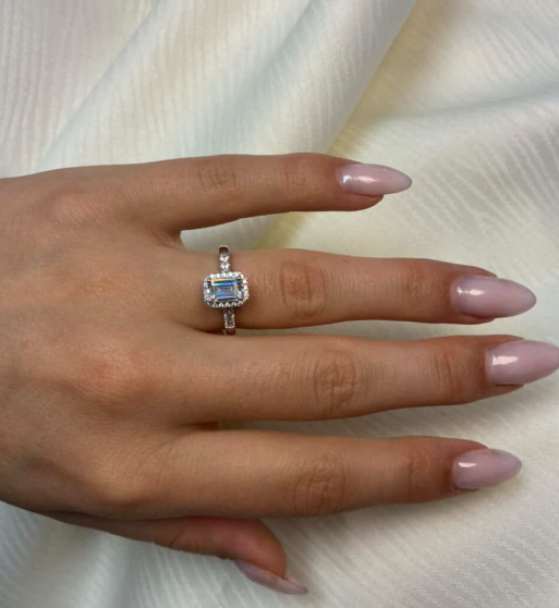14 kt hvidguld Halo Luxury by Siersbøl med 14 karat hvidgulds diamant ring med ialt 1,32 ct lab grown diamanter TW/VS - 1 ct kvadratisk center sten med ialt 0,32 ct diamanter rundt om center stenen og på ringskinne.