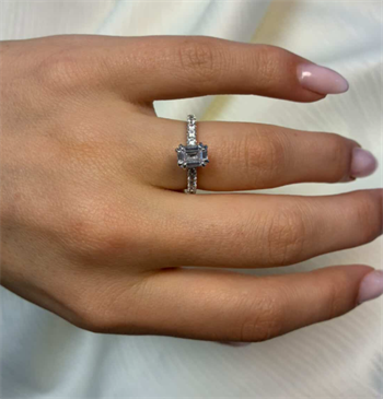 14 kt hvidguld Modern Luxury by Siersbøl med 14 karat hvidgulds diamant ring med ialt 1,4 ct lab grown diamanter TW/VS - 1 ct firkantet center sten og 10 sten på ringskinne.