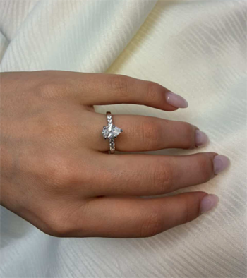 14 kt hvidguld Modern Luxury by Siersbøl med 14 karat hvidgulds diamant ring med ialt 1,2 ct lab grown diamanter TW/VS - 1 ct dråbe formet center sten og 6 sten på ringskinne.
