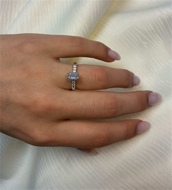 14 kt hvidguld Modern Luxury by Siersbøl med 14 karat hvidgulds diamant ring med ialt 1,2 ct lab grown diamanter TW/VS - 1 ct firkantet center sten og 6 sten på ringskinne.
