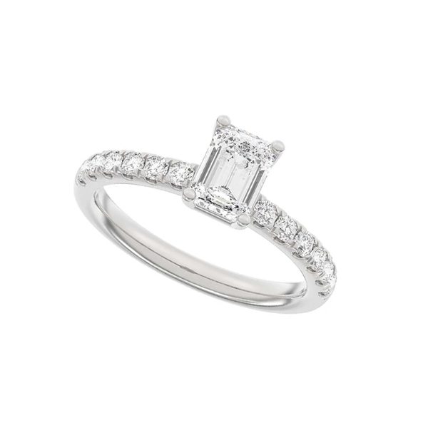 14 kt hvidguld Classic Luxury by Siersbøl med 14 karat hvidgulds diamant ring med ialt 1,4 ct lab grown diamanter TW/VS - 1 ct firkantet center sten og seks diamanter ned af begge sider på ringskinnen alle fattet i classic 4 grab fatning.