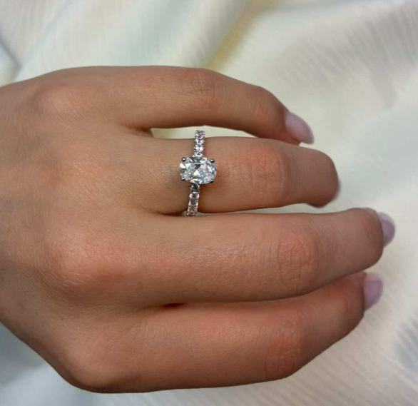 14 kt hvidguld Classic Luxury by Siersbøl med 14 karat hvidgulds diamant ring med ialt 1,4 ct lab grown diamanter TW/VS - 1 ct oval center sten og seks diamanter ned af begge sider på ringskinnen alle fattet i classic 4 grab fatning.