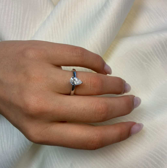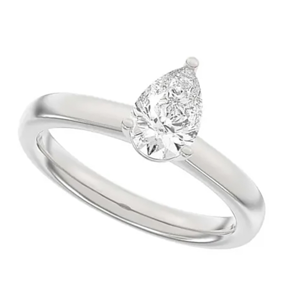 14 kt hvidguld Classic Luxury by Siersbøl med 14 karat hvidgulds diamant ring med ialt 1,0 ct lab grown diamanter TW/VS - 1 ct dråbe formet center sten fattet i en classic 4 grab fatning - og helt glat ringskinne.