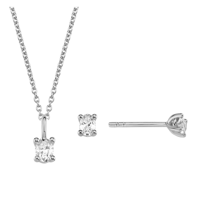 14 kt hvidguld smykkesæt, The One Oval serien fra Nuran med ialt 1,14 ct Diamant