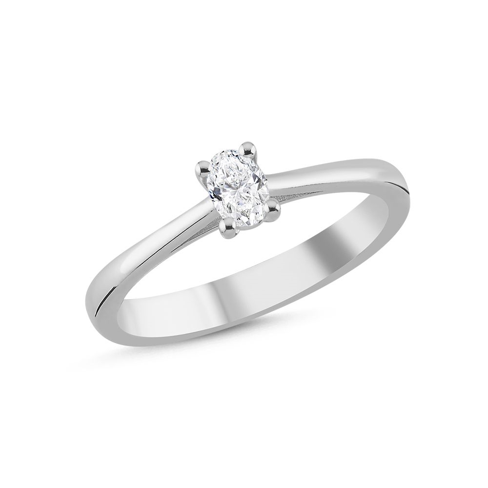 14 kt hvidguld The One Oval fra Nuran med The One Oval smykkesættet med ring, ørestikker og vedhæng er i 14 karat hvidguld med 0,23 ct Wesselton SI brillianter smukt fattet med detaljeret fatninger og 42 cm sølv kæde til vedhænget.