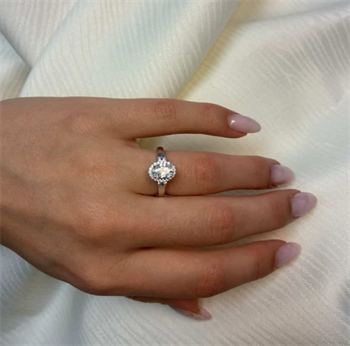 14 kt rødguld Halo Luxury by Siersbøl med 14 karat diamant ring med ialt 1,45 ct lab grown diamanter TW/VS - 1 ct oval center sten med ialt 0,45 ct diamanter rundt om center stenen og på ringskinne.