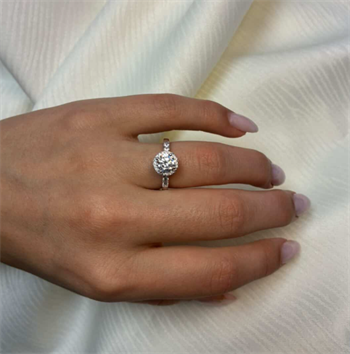 14 kt rødguld Halo Luxury by Siersbøl med 14 karat diamant ring med ialt 1,32 ct lab grown diamanter TW/VS - 1 ct rund center sten med ialt 0,32 ct diamanter rundt om center stenen og på ringskinne.