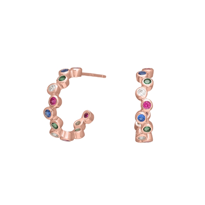 EbruNor Ørering fra Joanli Nor med Smukke åbne og abstrakte creoler med flotte farverige zirkonia, 19 mm i diameter
