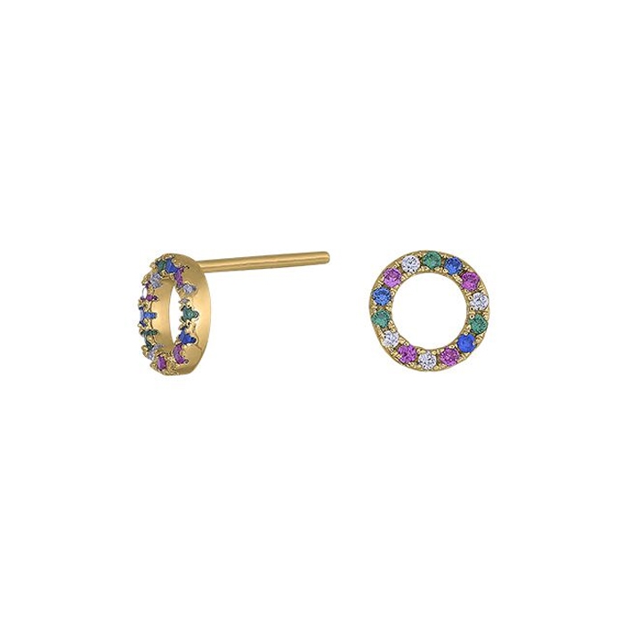 Joanli Nor smykkerne er dekorerede med farverige zirkoner langs hele kanten og måler 8 mm i diameter.