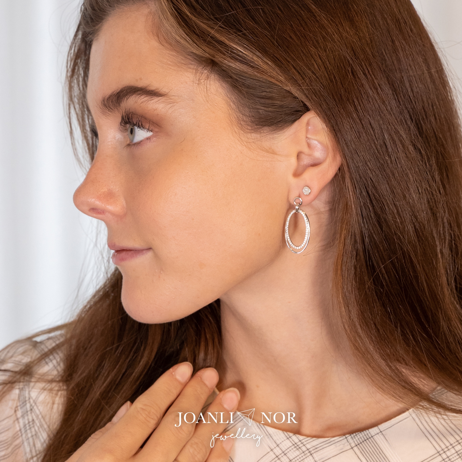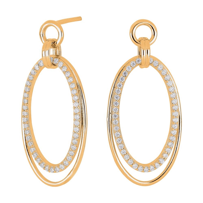 GYRITHNOR Øreringe fra Joanli Nor med Smukke ørestikker med hængende ovaler, den ene smukt besat med glitrende zirkonia. Længde 30 mm