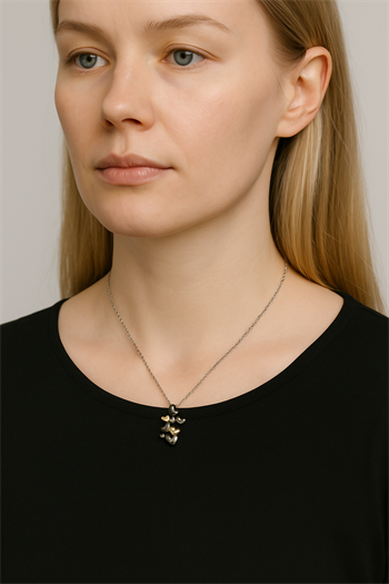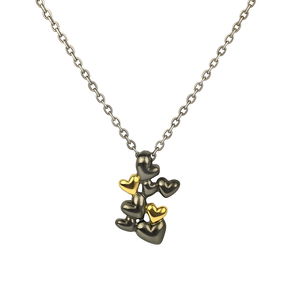 Smukt vedhæng af masser små hjerter. Sort rhodinerede og forgyldte mellem hinanden