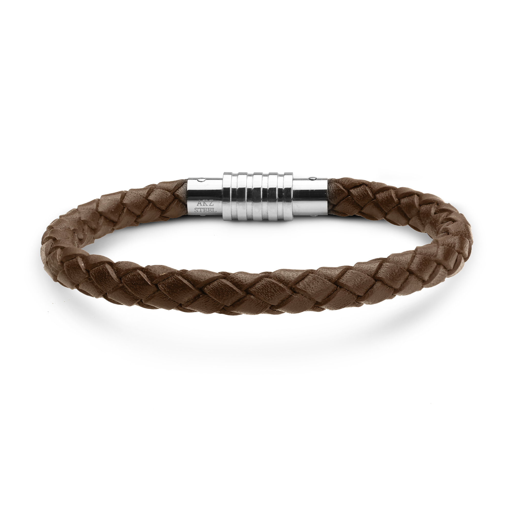 Aagaard's LÆDER ARMBÅND BRUN FLET M/STÅL LÅS