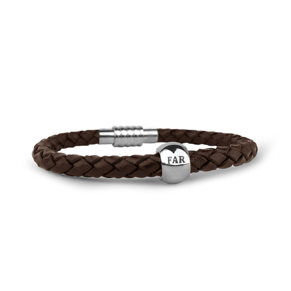 Mens armbånd brun med rund far charm 20 fra Aagaard