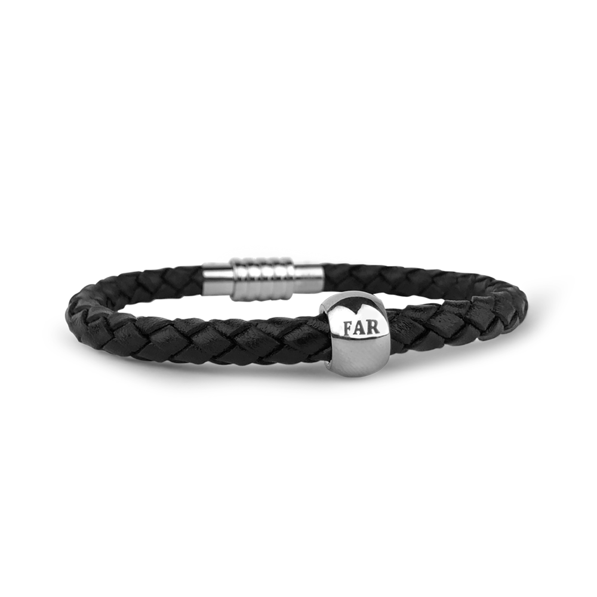 Mens armbånd sort med rund far charm 21 fra Aagaard