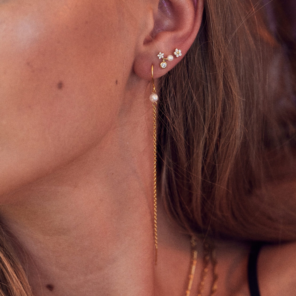 Elegant og klassisk ørestik fra Alura Copenhagens Venus-kollektion, inspireret af planeten Venus – efter månen det klareste objekt på nattehimlen og symbol på kærlighed og skønhed. Smykket er lavet i 925 sterlingsølv med 18 karat guldbelægning og prydet med funklende facetslebne zirkonia, som skaber et subtilt, glimtende udtryk. Ørestikken har en diameter på ca. 4,8 mm med zirkoniasten på ca. 1,5 mm og sælges enkeltvis – perfekt som et diskret hverdags-smykke eller som del af en elegant ørestak.