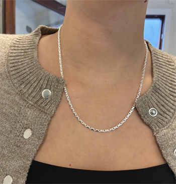 Anker Facet massivt sterling sølv halskæde, tråd 1,0 mm / bredde ca 2,6 mm - længde 50 cm