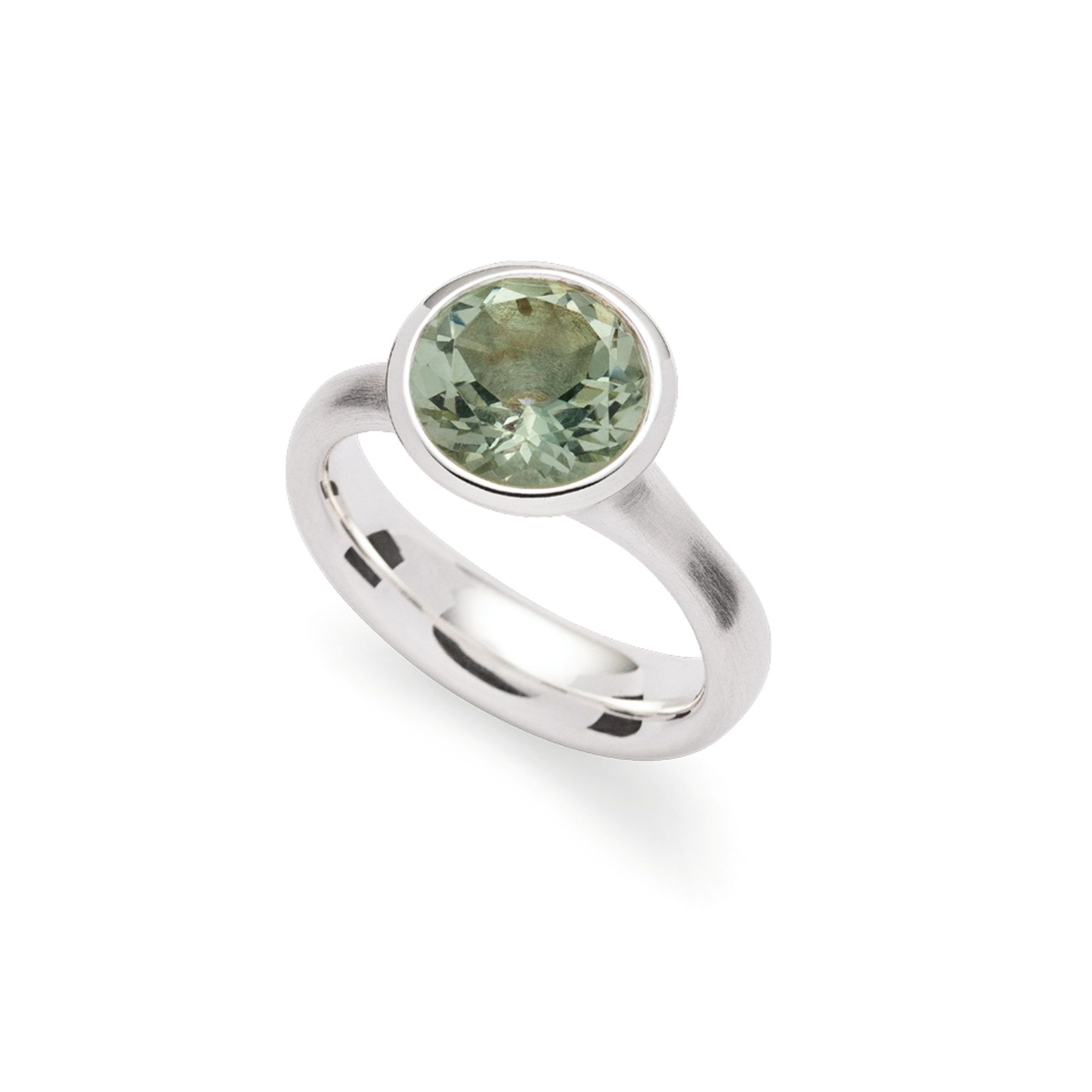 Bastian Inverun\'s 925/- ring,rh.-pl., mat/pol.,amethyst grøn 3,1ct