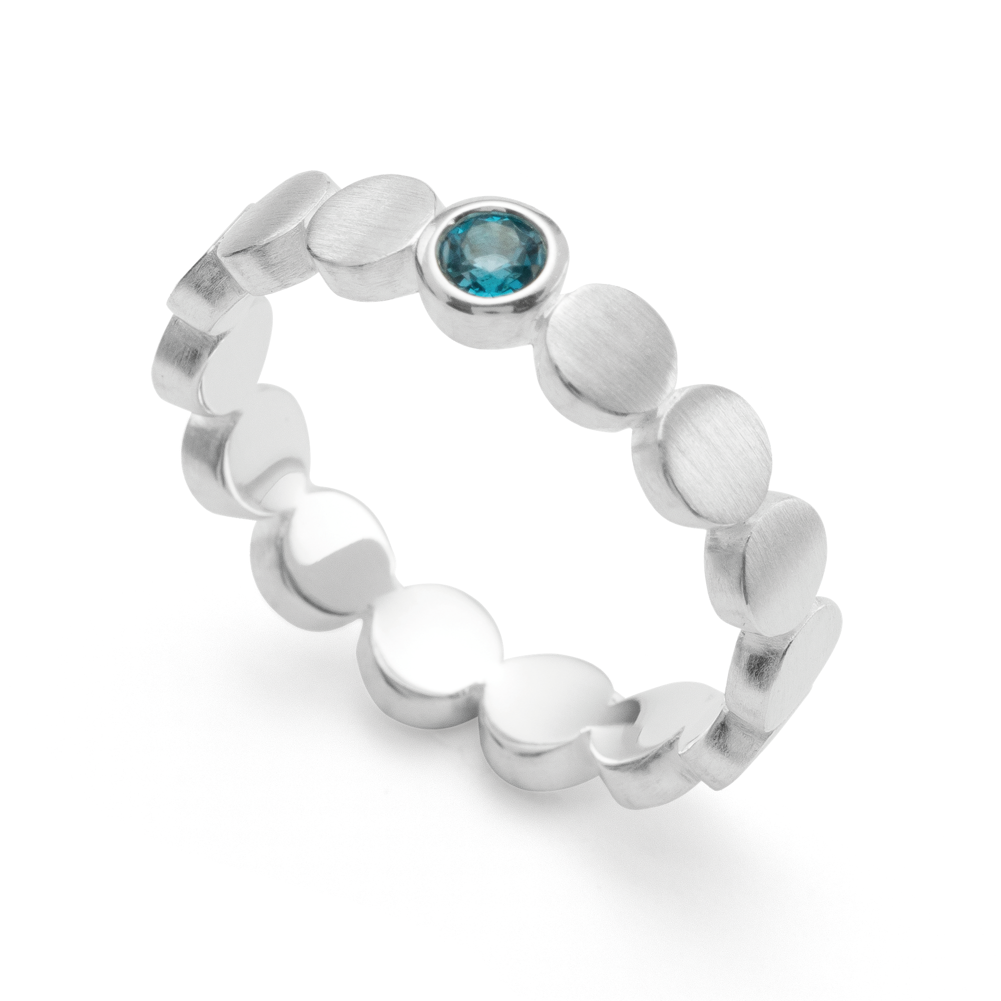 Bastian Inverun's 925/- ring, rho. mat/blank, blå topas 0,14ct