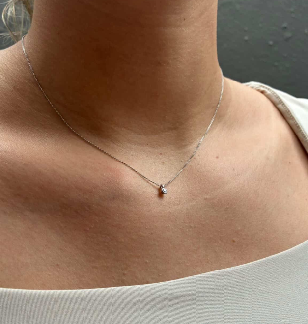 14 kt hvidguld diamant 0,05 ct fra Aagaard med smukt indfattet diamant i vedhæng