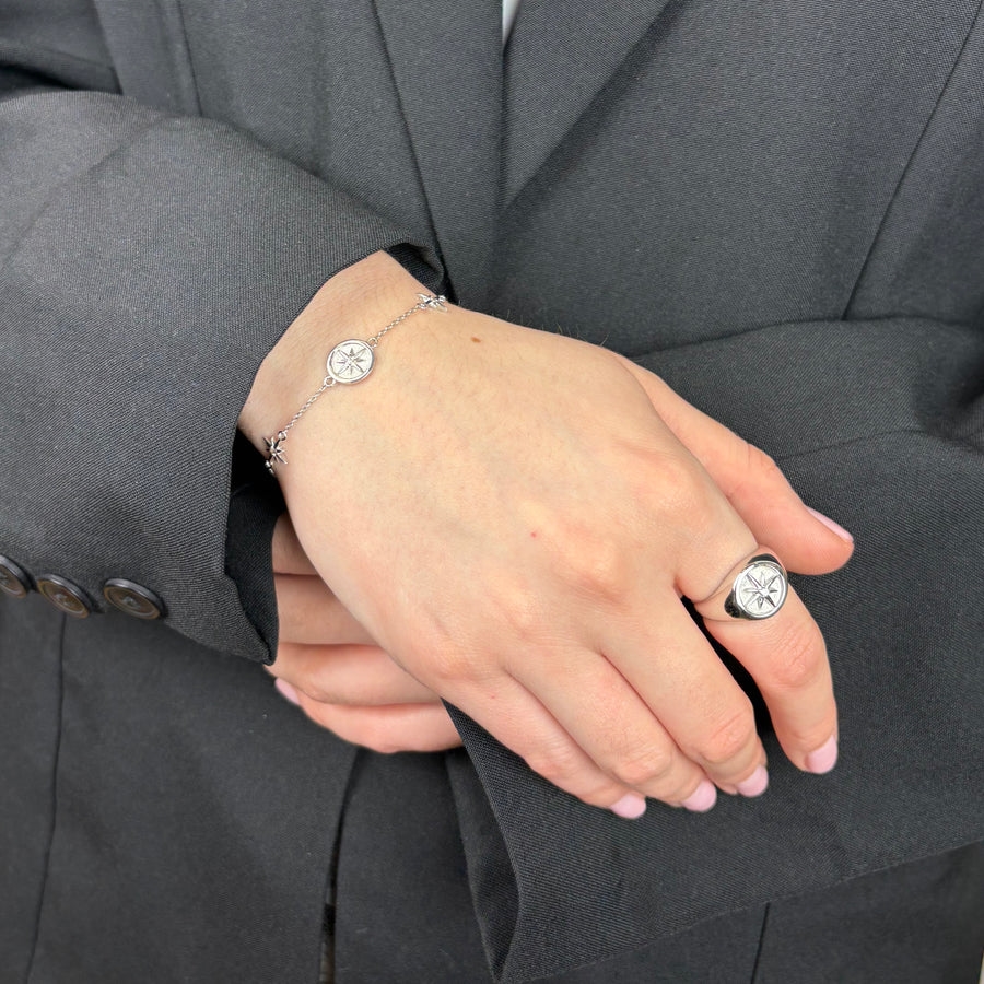 sterling sølv Star of the Night fra Kranz & Ziegler med Signet fingerring i sterling sølv med stjerne og glimtende zirkonia. Til ringen finder du både vedhæng, ørestikker og armbånd - se herunder