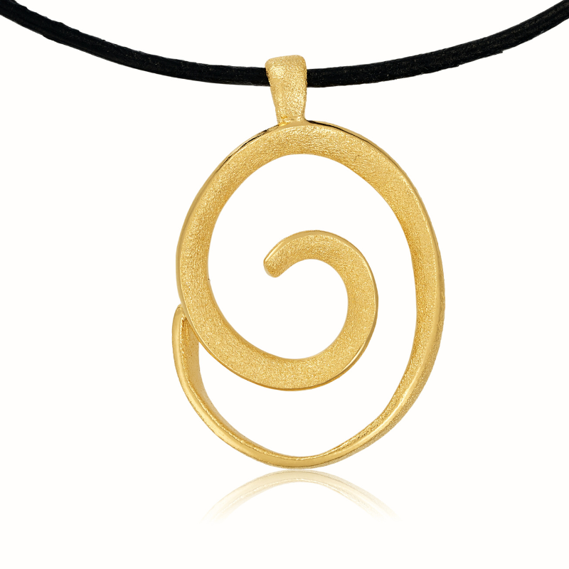 Elegant spiralformet halssmykke i matteret forgyldt sølv og med blanke kanter, der giver smykket et unikt og funklende look., fra Blicher Fuglsang