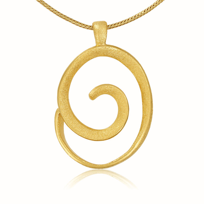 Elegant spiralformet halssmykke i matteret forgyldt sølv og med blanke kanter, der giver smykket et unikt og funklende look., fra Blicher Fuglsang