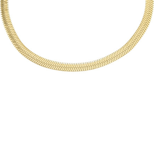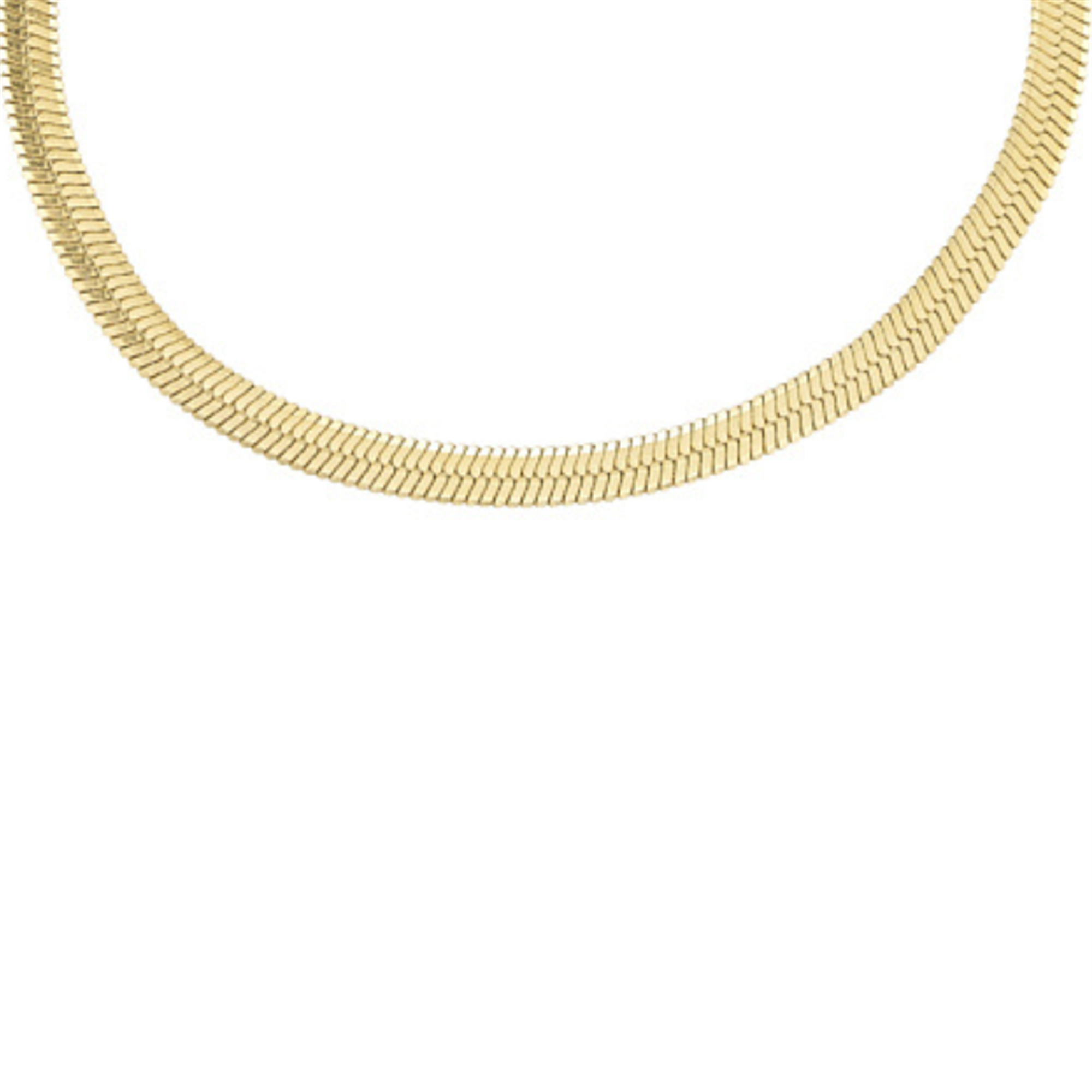 Bredt slangehalskæde i stål, belagt med 14 karat guld, et smukt og klassisk design. Halskæden er 5 mm bred og længden er 42 cm + 3 cm forlænger. Vandfast med unik holdbarhed., fra Blicher Fuglsang