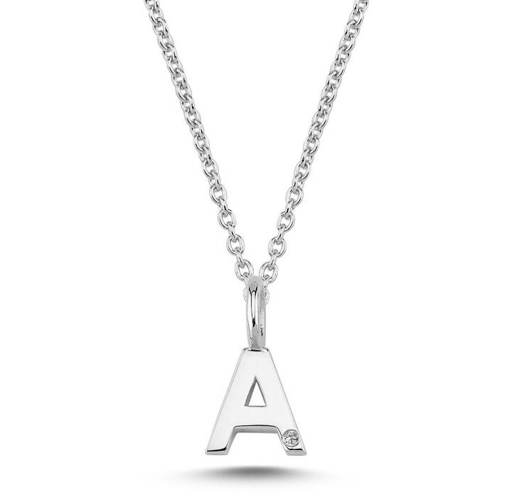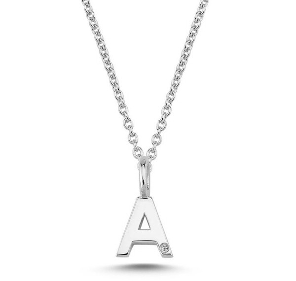 Bogstav vedhæng 6,5 mm, A i 14 karat hvidguld med 0,005 ct brillant