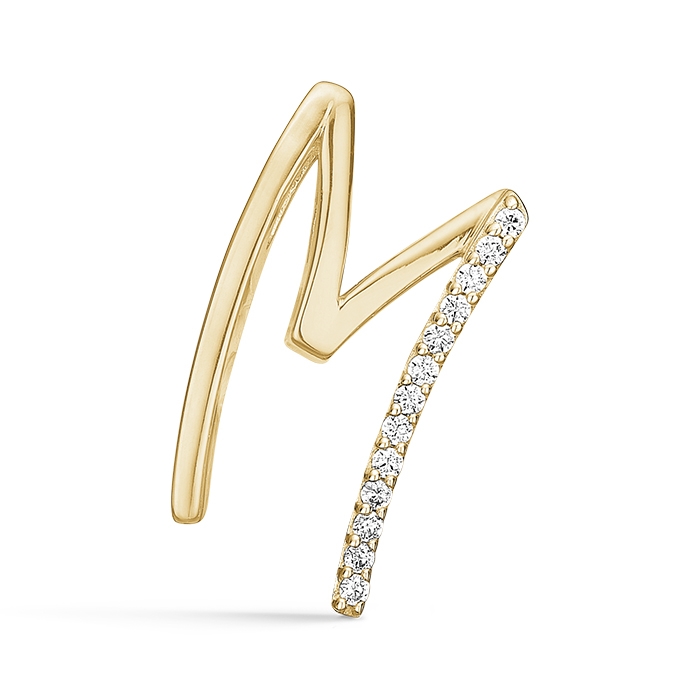 Bogstaver i 8 karat guld med zirkonia - 15 mm vedhæng i skråskrift - M