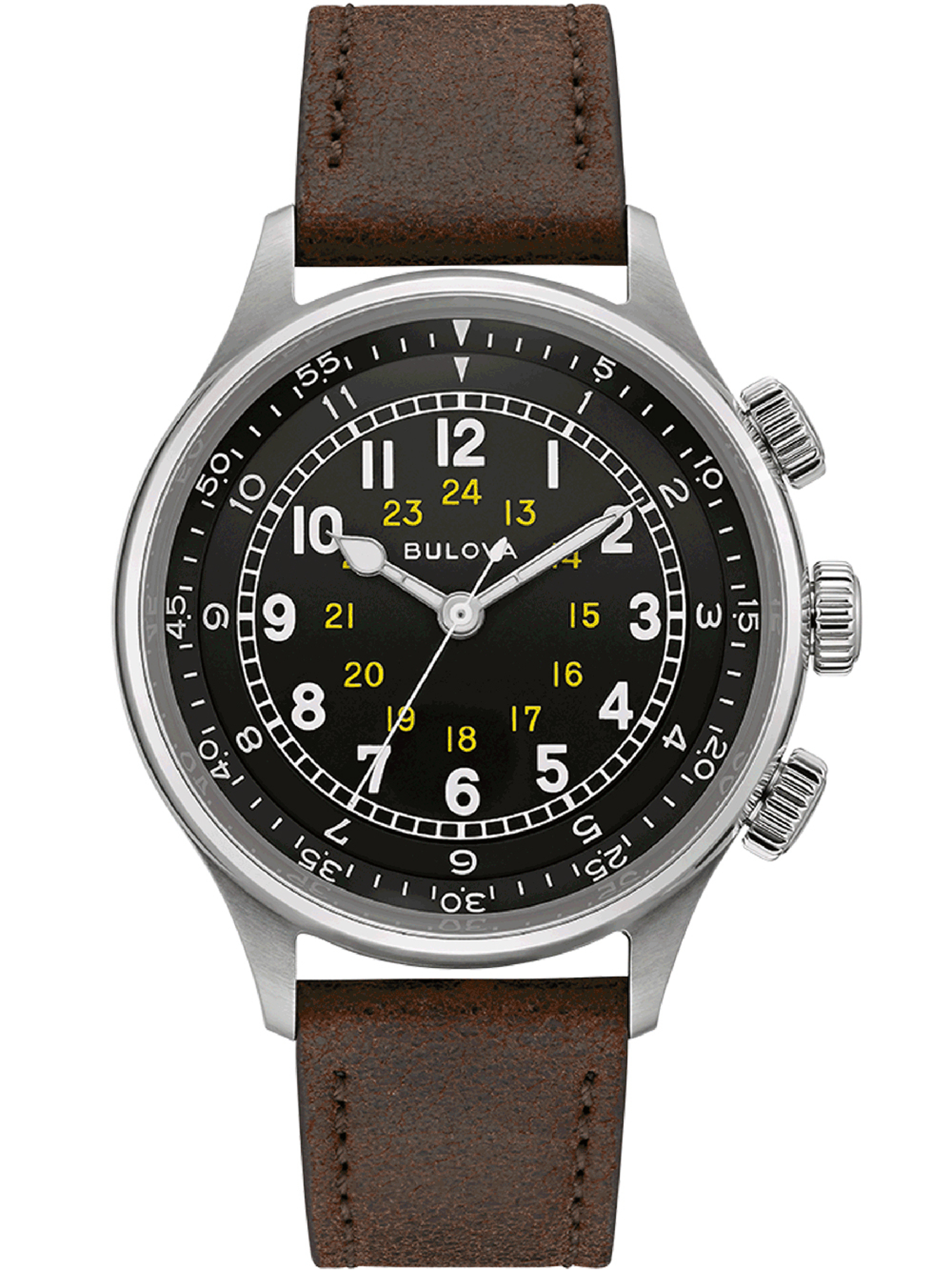 Den velorganiserede urskive med både 12- og 24-timers tal giver dig mulighed for hurtig og præcis tidsaflæsning. To knapper på højre side af urkassen giver dig fuld kontrol over urets funktioner, når du har brug for at justere tid eller dato.