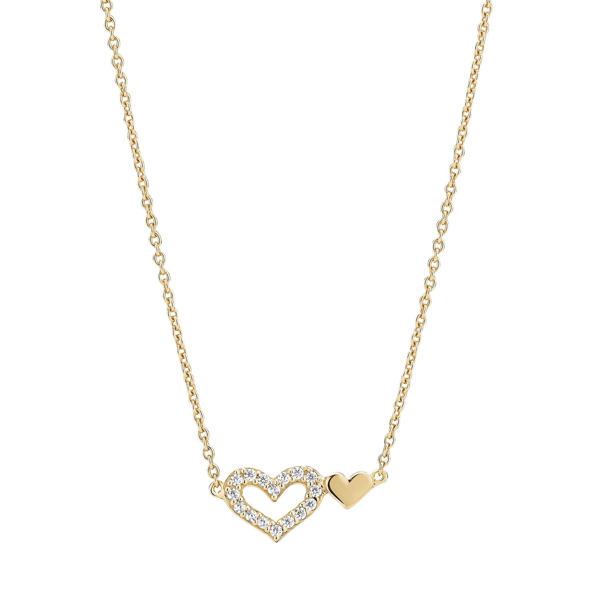 Collier dobbelt hjerte zirkonia forgyldt sølv