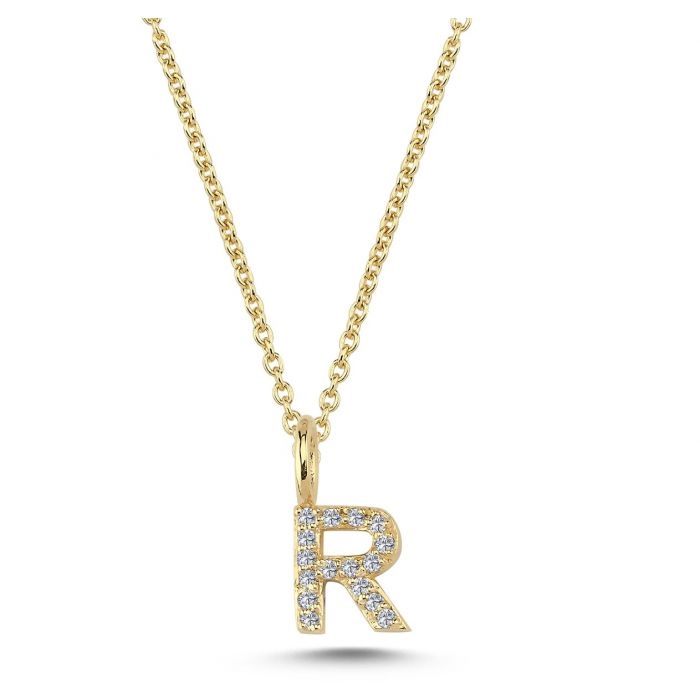 Diamant bogstavs vedhæng 6,5 mm, R i 14 karat guld med 0,080 ct Wesselton SI