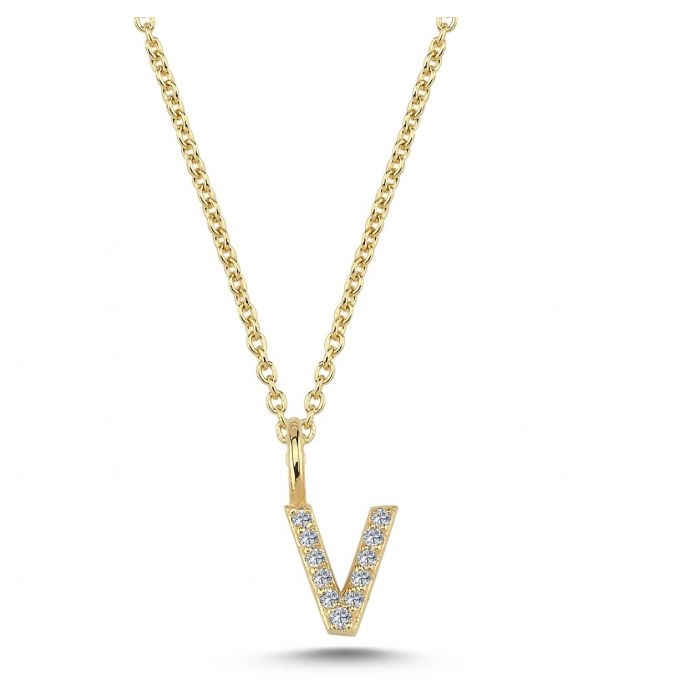 Diamant bogstavs vedhæng 6,5 mm, V i 14 karat guld med 0,055 ct Wesselton SI