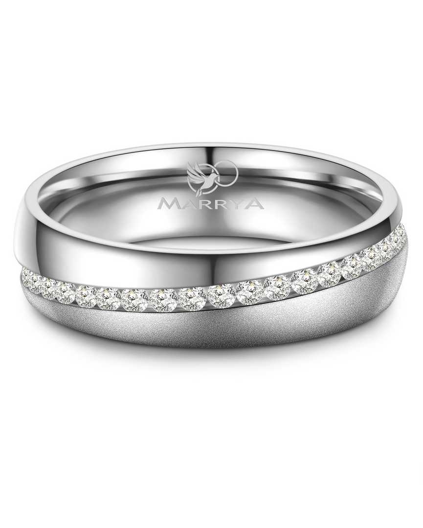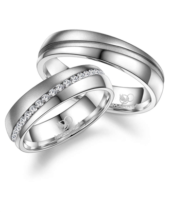 Dame- og herrering er ens, men i dameringen er der fattet hvide zirkonia hele vejen i rillen
