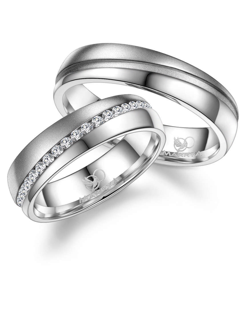 Marrya fra Houmann, Et par 5,5 mm rustfri vielsesringe, med to forskellige overflader delt med en rille.