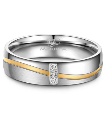 Dame- og herrering er ens, men i dameringen er der fattet tre hvide zirkonia.