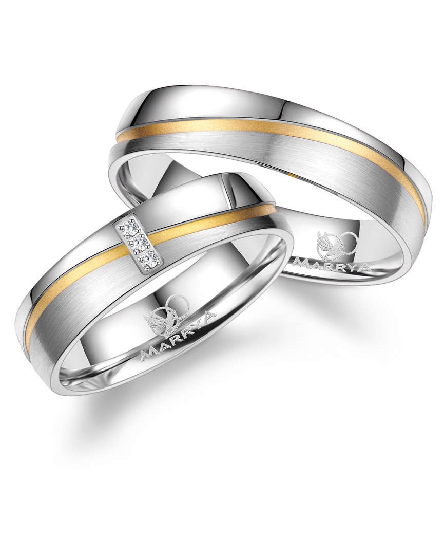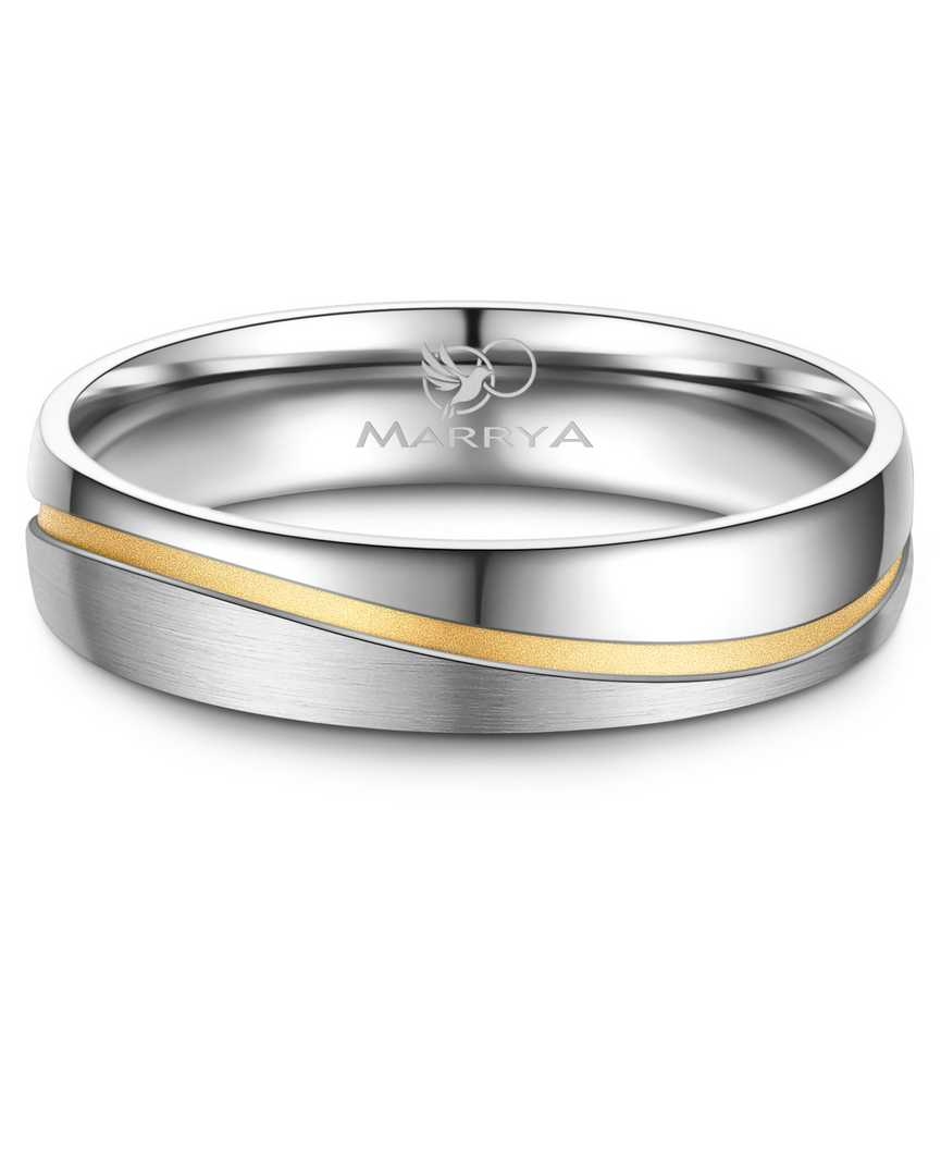 Marrya fra Houmann, Et par 5 mm rustfri stål vielsesringe, med 14 kt IP forgyldte kanal igennem hele ringen