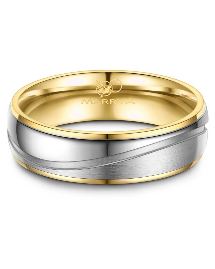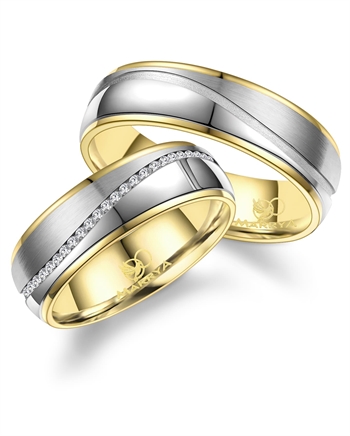 Marrya fra Houmann, Et par 6,5 mm rustfri vielsesringe, med en blank og silkmat overflade delt af en kanal - og indvendig og på kanten IP forgyldt med 14 karat guld