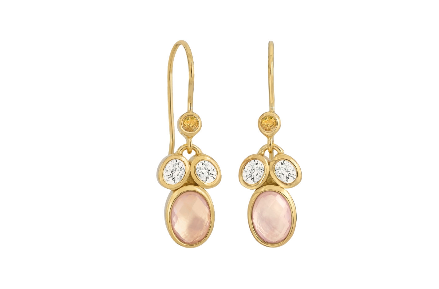 Disse forgyldte ørehængere fra Rabinovich kombinerer det eksklusive med det hverdagselegante. Med deres unikke stenkombination af rosenkvarts, zirkonia og citrin skaber de et sofistikeret udtryk, der er ideelt til både formelle middage og kulturelle arrangementer. Det luksuriøse design fremhæves af det forgyldte sterlingsølv.