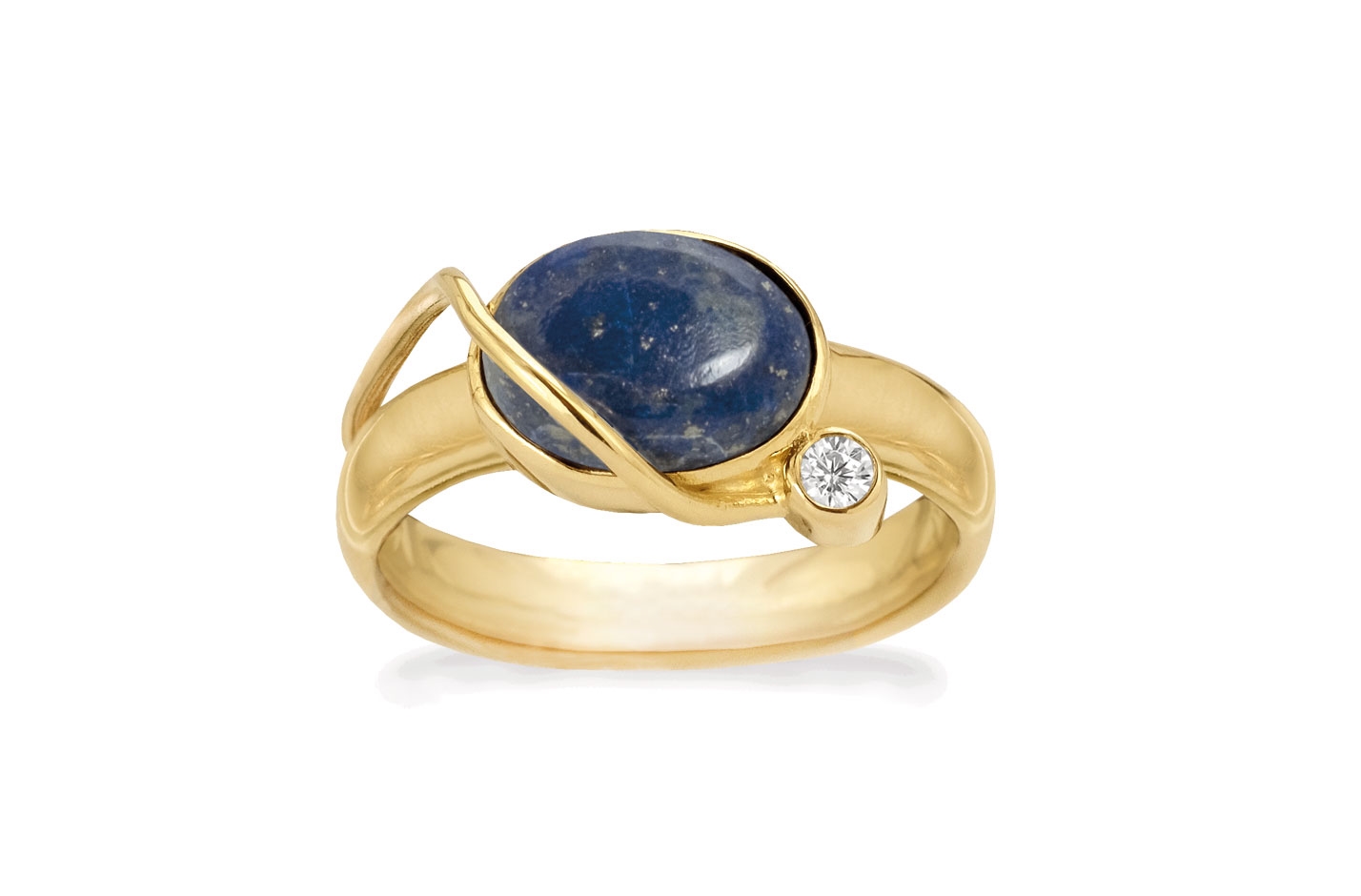 Den forgyldte sterling sølv ring er skabt til at bevare sin skønhed gennem tiden. Det unikke design med den snoede gulddesign og dybe blå lapis-sten skaber et luksuriøst udtryk, der passer ideelt til formelle begivenheder, mens ringen forbliver bemærkelsesværdig uden at være overdimensioneret til daglig brug.