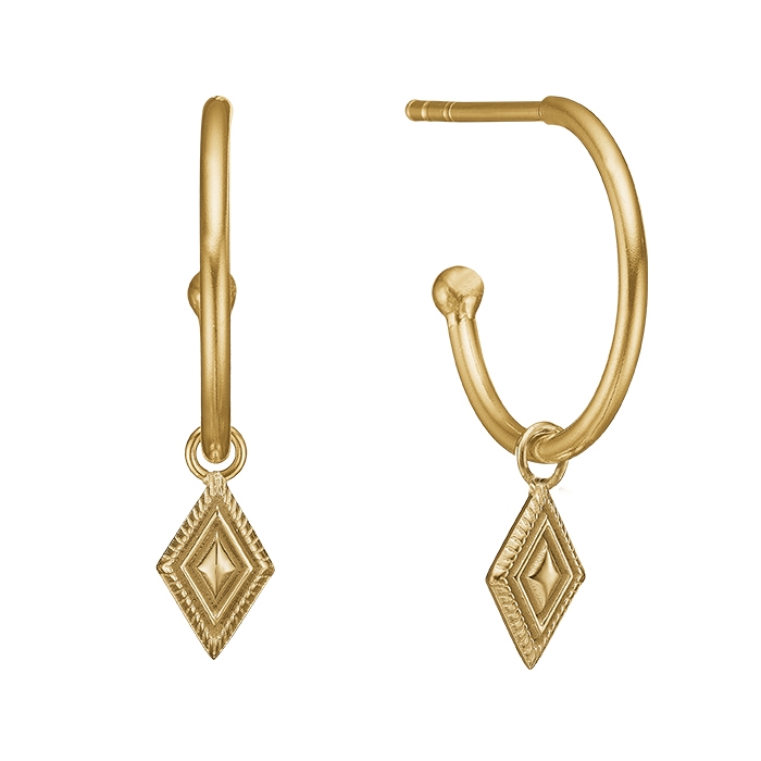 forgyldt sølv fra Story by Kranz & Ziegler med Flotte åbne creoler med små rombe vedhæng i.