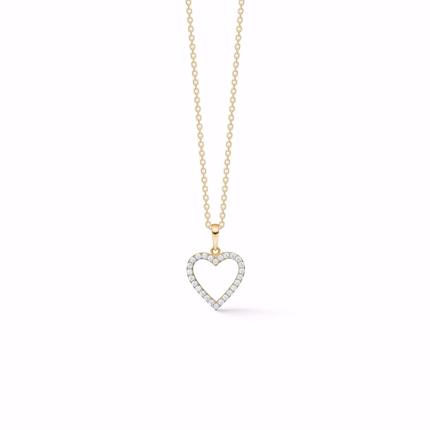 Guldvedhæng 8 kt hjerte med zirkonia og kæde