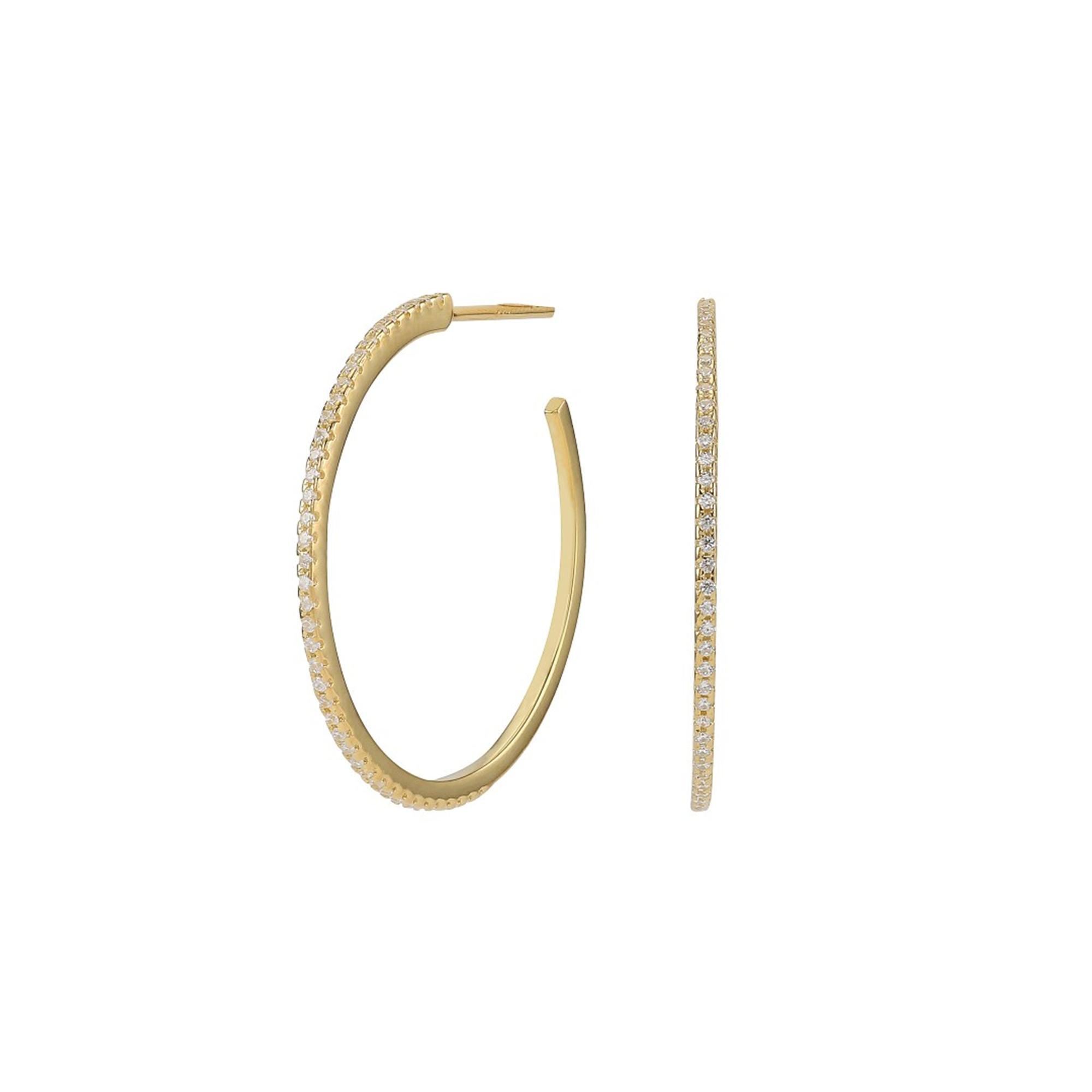 Disse moderigtige creoler, fra vores Adina serie, har et særligt charmerende design. De smukke, åbne forgyldte sølvcreoler er besat med funklende zirkonia sten, som bidrager til sættets feminine udstråling. Creolerne findes i 2 størrelser – disse