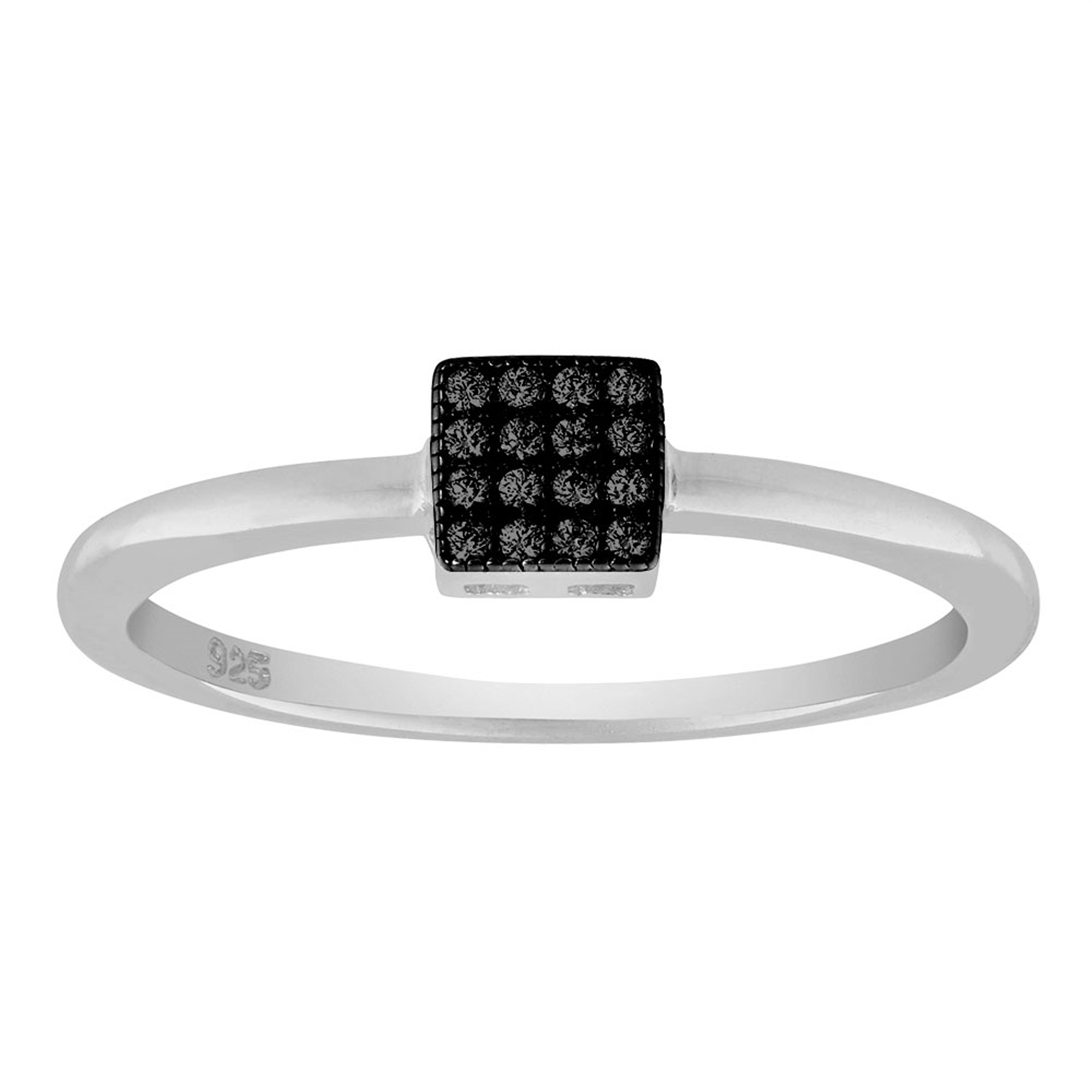 Joanli Nor\'s Rhd. sølvring ALITANOR sorte cz. square 4mm Str.54
