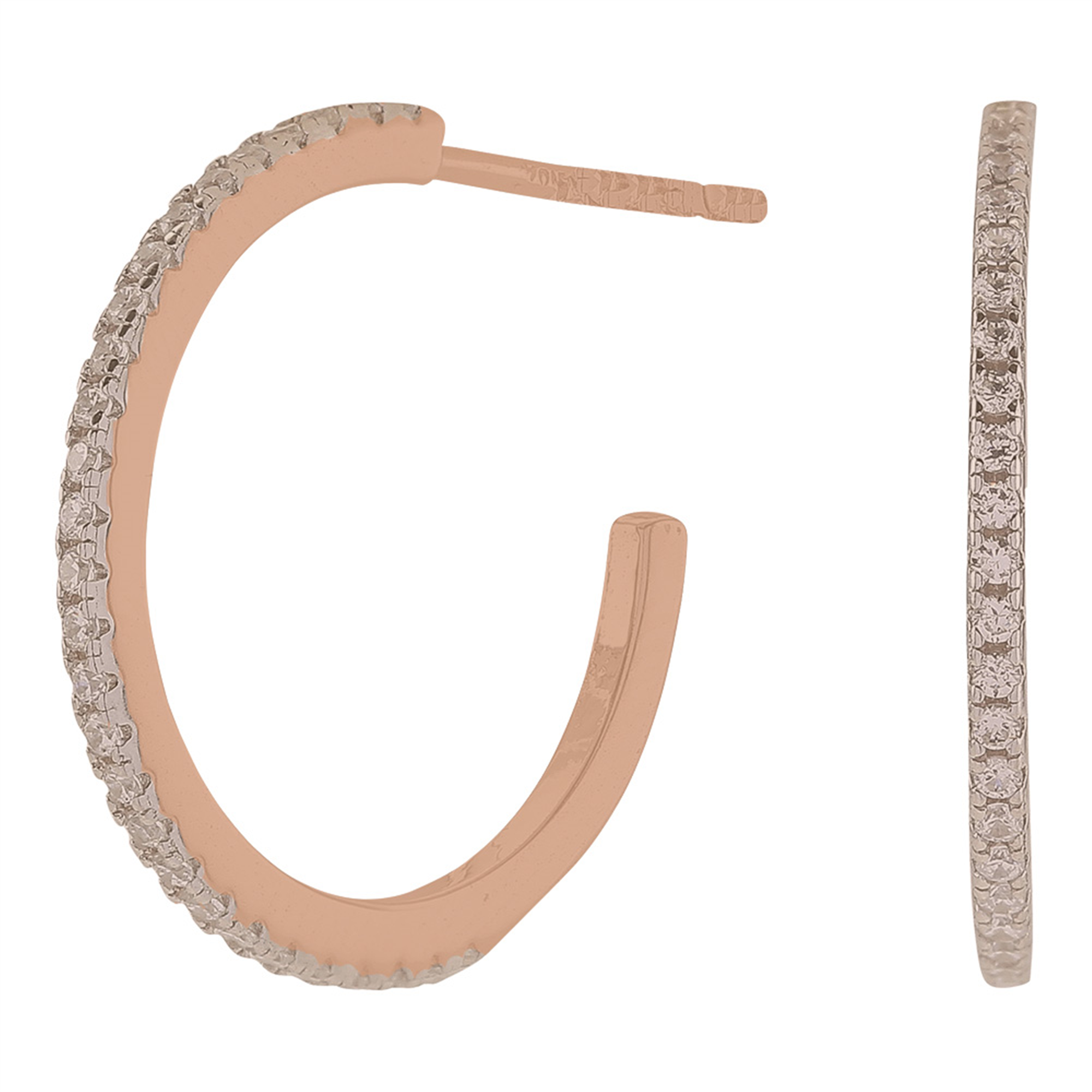 Disse moderigtige creoler, fra vores Adina serie, har et særligt charmerende design. De smukke, åbne rosaforgyldte sølvcreoler er besat med funklende zirkonia sten, som bidrager til sættets feminine udstråling. Creolerne findes i 2 størrelser – d