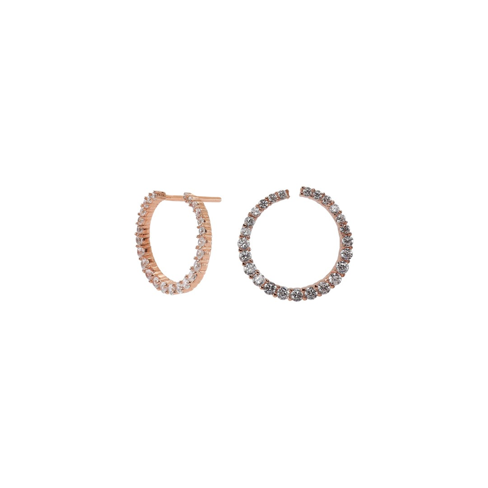 Unikke og stilfulde cirkel øreringe fra vores Anna serie. For den stilsikre kvinde er dette et godt bud på et anderledes sæt runde rosaforgyldte sølvøreringe. Cirklen er twistet, så den ene ende går bag øreflippen, hvilket giver sættet et spændende og